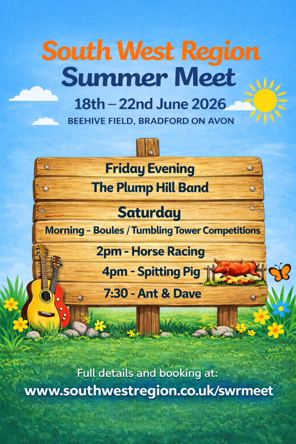 The South West Region is delighted to announce that the 2026 South West Region Meet will take place at the fantastic Beehive Field, Bradford on Avon, from Thursday 18 to Monday 22 June 2026.